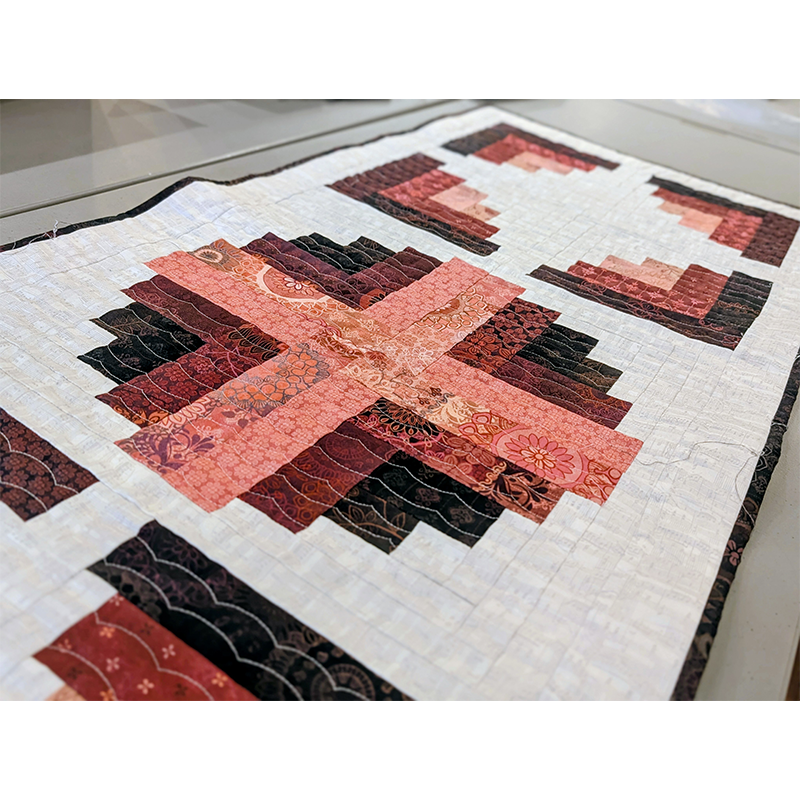 Learn to make this beginner friendly adorable Dotsy Bed Runner quilt. Standard cutting and sewing and curvy log cabin assembly techniques will be covered.