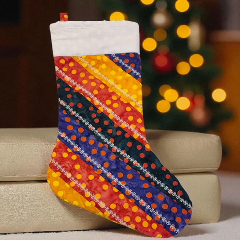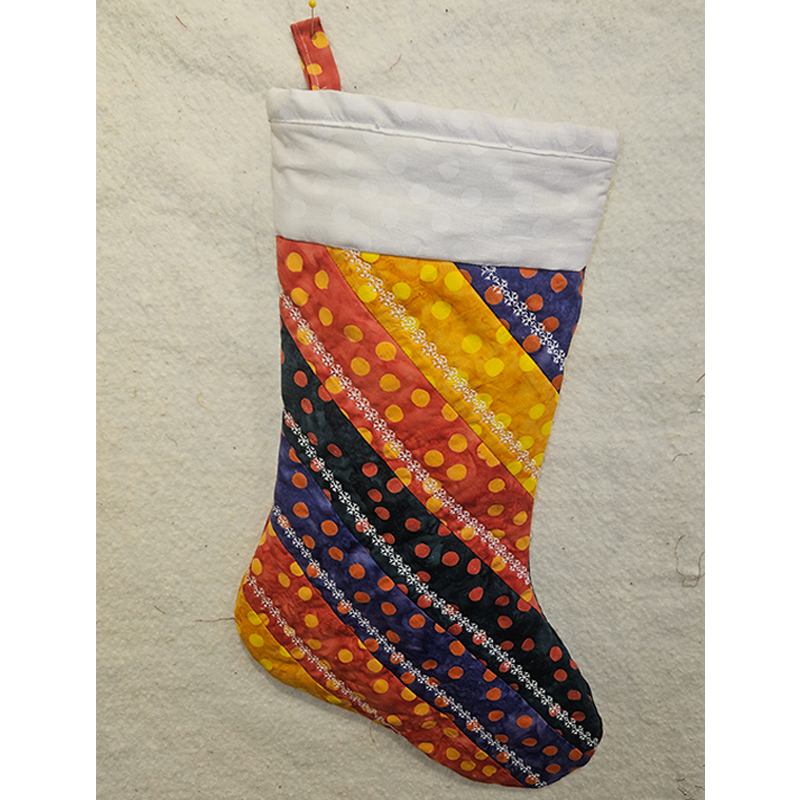 Create an adorable striped holiday stocking. Once you learn this quilt-as-you-go technique, the creative design possibilities are endless! Standard sewing, quilting and binding will be covered.