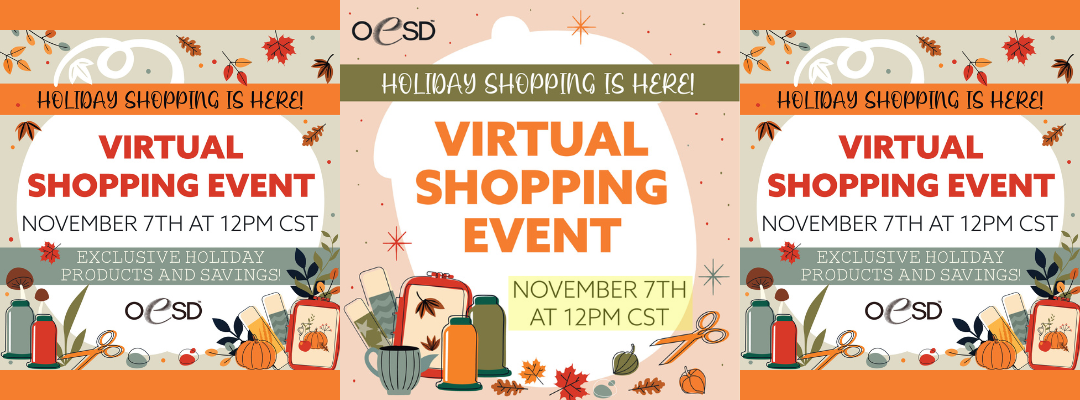 FREE: OESD Pre-Black Friday Holiday Virtual Shopping Event Nov 7 12:00 pm - 1:00 pm Embroidery FREE: OESD Pre-Black Friday Holiday Virtual Shopping Event
