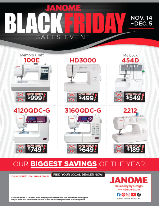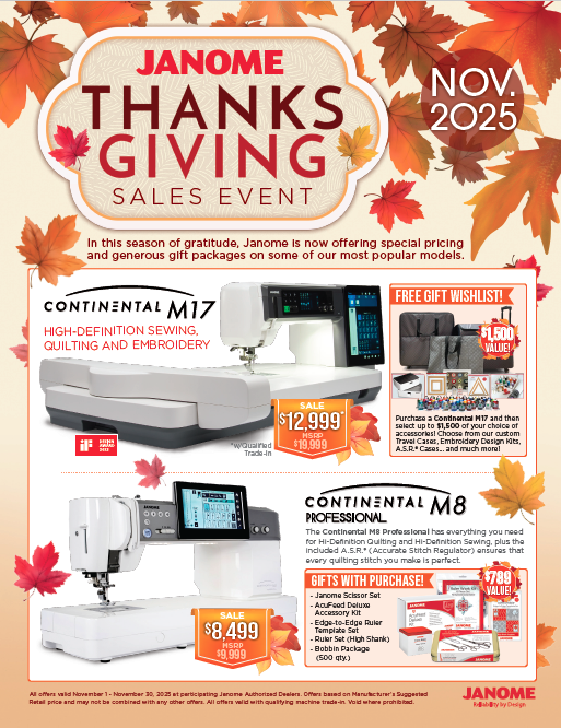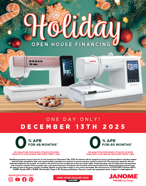Janome produces sewing, embroidery & cutting machines which inspire creativity and innovation, yet are simple to use. We know the most important thing about our products is not the machines themselves, but what you create with them. The better your tools, the more inventive, artistic and pleasurable your sewing experience. Shop Janome with us for great deals, pricing and customer service!