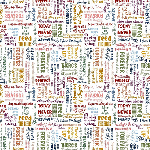 A Spoonful of Sugar by Jennifer Long of Sew A Story for Riley Blake Designs is great for quilting, apparel and home decor. This text print features phrases from Mary Poppins.
