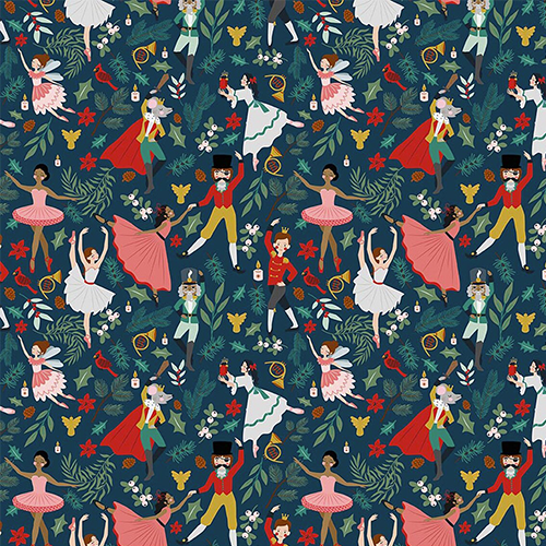 Nutcracker Tradition by Jennifer Long of Sew A Story for Riley Blake Designs is great for quilting, apparel and home decor. This digitally-printed fabric features Nutcracker ballet characters, dancers, foliage, trumpets, birds, and more.