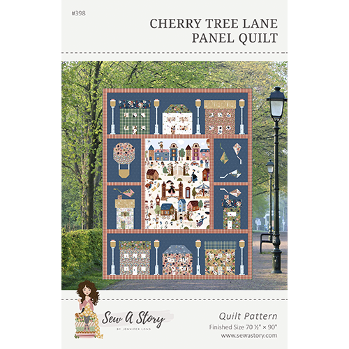Step onto Cherry Tree Lane with this whimsical panel quilt pattern designed for parents, grandparents, and handmade gift-makers. Featuring charming scenes from the beloved story, this quilt highlights the coordinating fabric panel in a storytelling layout. Finished size: 70½” x 90″.
